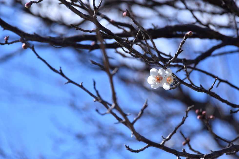 まだ開花していない木も多く、公園全体の梅の木が華やかになるのにはまだ少し時間がかかるだろう。