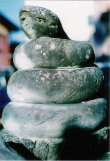 これは、弁才天の「使い」として、狛犬や稲荷のキツネと同じ感覚で設置されたものだ。弁才天は、河を神格化したインドの神。ヘビは河を象徴する生き物だから、ヘビとは無縁ではない。とはいえ、それだけでヘビが弁才天の使いとなったわけではない。