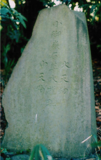 写真は、新座市・法台寺の富士塚にある文字碑。中央に「小御嶽石尊大権現」、その左右に「大天狗・小天狗」と書かれている。