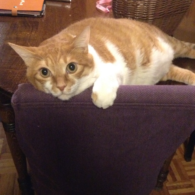 椅子の背もたれにちょこんと手を乗せて、パチリ!カメラ目線、頂きました♫ オミト、現在11kg
