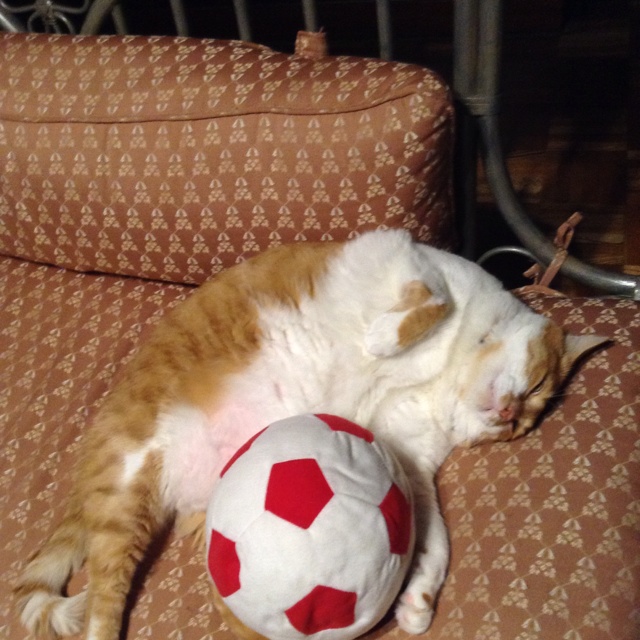 うちの親分猫のオミト♂と妹分猫のさくら♀です。 オレンジ色のがオミトでグレーのほうがさくらです。 じつはさくら♀は子猫ではなくて成猫で3キロちょっとあるごく普通サイズの日本猫です。 そうです。 オミトが10キロ級の超デブ猫なんです。 よくいる柴犬くらいのサイズかな。 もう猫かタヌキか犬かもわからない生き物と化しております…。 はぁ、お医者で痩せさせなさいと再三言われておりますがこやつには不可能かと思います。 スッゴく食べるし、1日眠ってるし、性格が温和で争って走り回ったりしないし…要は食っちゃ寝の典型例です? この他まだ二匹いまして寅♂とシノワ♀がいます。 最近仲悪いこの二匹はなかなか写真を撮らせてくれないんで、画像が出来たらまたアップします?