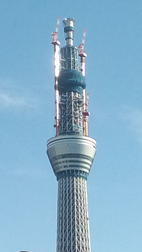 成田山に初詣に行って来ました。画像は行きの通り道、浅草付近で見かけたスカイツリー。 それと、浅草寺の初詣ラッシュに巻き込まれ馬道を迂回させられた時に出現した標識。一年に3日間だけここを右折してもいいの~!? なんか超ピンポイントな短期間の特別な右折に感激。 普段右折禁止の交差点だから、反対車線の対向車が左折して来てスレスレの時、ぶつかりそうでちょっと怖かった。 当然右折レーンは道に書いて無いし、右折の侵入角度はキツくて無理があるし。 対向車もこちらの車に対して「お前なんでここで出て来てるんだよ」みたいな雰囲気だったので、スリリングな右折でした。 スカイツリーは晴れていたのできれいに撮れました。 けっこう高くまで伸びてきましたね。 成田山、やっぱり三が日は混んでました。 去年は娘がまだ生後3ヶ月赤ちゃんだったので、病気にさせたくなかったし、私自身まだ産後の体調が回復しなくて行けませんでした。 今年、やっと参拝しましたがやっぱり行くとなんか気もちが すっきりしますね。 大変だったけれど行って良かった。 今年は色々大変なことが待ち受けてる年だけれど、頑張っていこうと思いました。