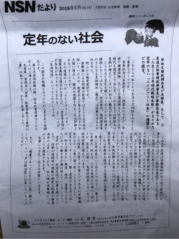 雨天となった週末金曜日は終日デスクワーク。金曜日は何故か新規お問い合わせの多い日なのだが、この日は8月の夏祭りイベントでの見積もりご依頼が某得意先より二年ぶりに。即レスが大事なため、一時間以内には先方宛FAX。二年ぶりのご縁がありますように♪ 先日の日経新聞折り込みチラシで目についたキーワード「定年のない社会」。そのコラムで述べられていることを要約すると、、、☆長寿社会・人生100年時代到来→現状の年金・保険システムは制度疲労、財源確保の必要性→その道筋の一つが「エイジフリー」=「生涯現役」→老若男女問わず、各自が今できることをやる! 平成8年、待遇面では何の不満もなくリストラされた訳でもないが、前職の会社を退職。自ら独立起業することを目指すため一旦フリーター状態となり、年収は半分~三分の一くらいにまで激減。約10年ほどかけて何とか自営で一本立ちできるようになり、年収も回復。私の同年代層はそろそろリタイアを意識し始めているようだが、商売自営の私にとっては無縁の世界。まさしく終身現役!生涯青春!エイジフリー!で仕事もプライベートも謳歌できる真っ只中!!ここからどん底時代のリベンジだ!!! Written by 人力車の博多人力屋 以下のリンクをクリックして下さると、一票投票されて人気blogランキングに反映されるシステムになっています(一日一票)。毎日更新の励みになります。→人気blogランキング<起業・独立部門> ご支援クリックいつもありがとうございます!ただいま37位に。