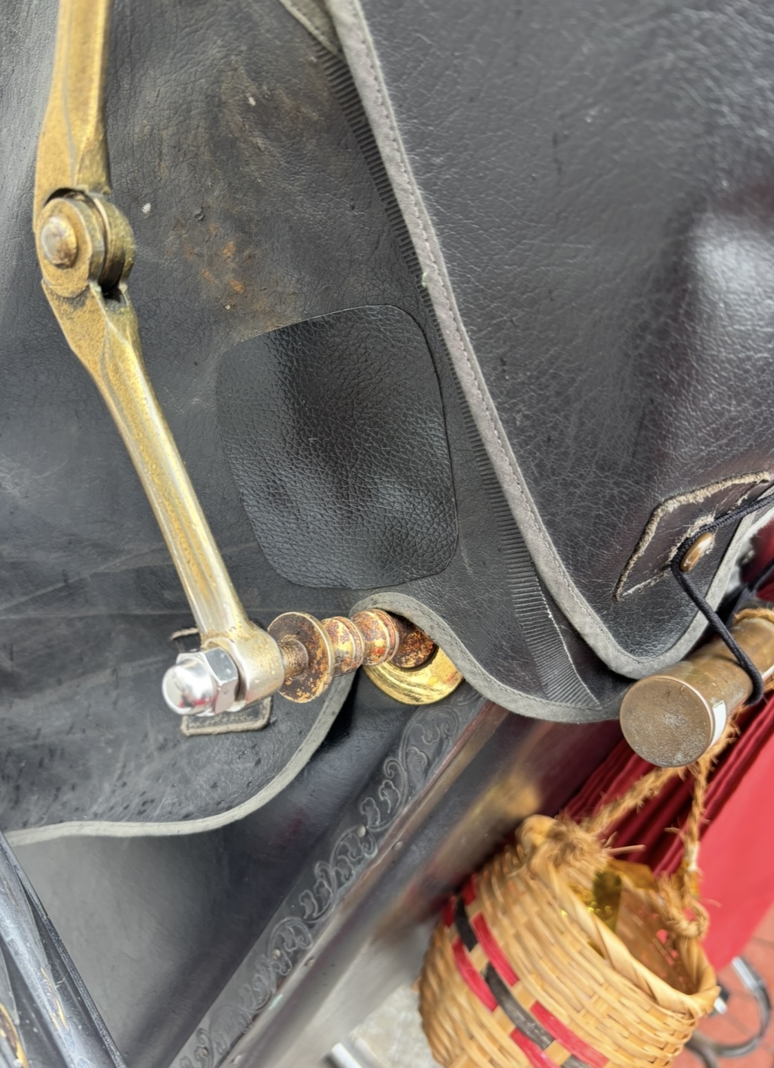 三連休中日の天皇誕生日。想定していた通り(記念撮影含めた)観光需要は乏しく、すき間時間を使ってのメンテナンス作業。一週間前にメルカリ経由で手に入れた「合皮補修シート」を適当な大きさに切り取り、幌の経年劣化で穴の開いた部分に貼り付け。シート裏に接着剤がついたテープ状のため、作業が簡単。うーん、遠目にはほとんど目立つことなく、これは正解!