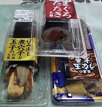 娘達は自分たちの好みの巻き寿司を、私と爺様はアナゴ、ウナギ、ネギトロです。