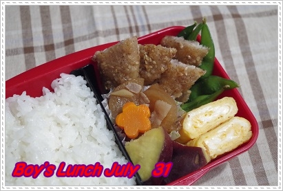 今日は、です。 はい、猛暑日です。 もちろん、エアコンの効いた部屋の中です。 昨日、電気の検針に来ていて 恐怖の電気代がわかりました。 18,000円 この金額、見方はそれぞれですが・・・ 我が家の使用量としては3位の高さです。 (金額は2位なんだけれど・・・) 子どもたちから徴収するかな、少しでも・・・ さて、私のバテた体。 お腹が痛いのは治ったんだけれど、胃はイマイチ。 それ以上にだるい。体が熱い。 体温も37度を超えたり下がったり・・・ このままだと、このブログが夏バテ報告ばっかりになっちゃいそう。 不調と言えども、食欲はあるのよね。 食べられるから大丈夫・・・で大丈夫なのかな~ ![]() ![]() ![]() 味の和風竜田揚げ 大根の炒め煮 さつまいもの甘煮 ブロッコリー(旦那) エビと枝豆の湯葉包み(旦那) たまご焼き(長男) 枝豆(長男) さっき、姑がおまんじゅうをもってきてくれた。 自家製なんだけれど、それが微妙。 不衛生なところで作っているからね・・・ |