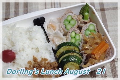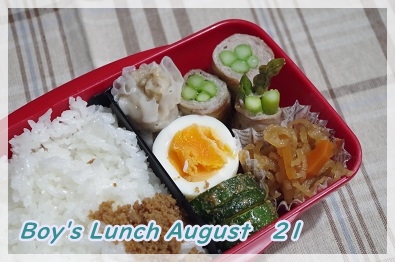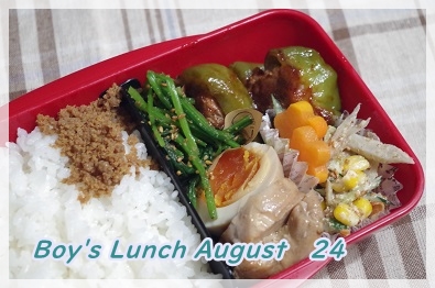 今日は、のちです。 台風の影響は、少なかったです。 今も強めの風邪が吹いていますが、 気温もほどほどに高く、風が気持ちいいです。 連休が終わって、通常に戻ったはず・・・ それが、中々忙しい週に当たってしまって・・・ バタバタしています。 今週の仕事は大体片付いたので、 後は今夜の集金と明日1軒訪問して、事務処理のみ。 ホッとしたいところなんだけれど、 明日は実家の掃除に行って、作り置きのおかずも作らないと・・・ 後も少しで片付くぞ~ そう思いつつ、気合いをいれます。 6月末に、お主人を亡くされた友人のお宅に行って来ました。 いつものように穏やかで、笑顔でした。 落ち込んでいるかと心配でしたが、 それ以上に忙しく、落ち着かないようでした。 そして、明日娘さんの結婚式だそうです。 娘の結婚って、女親にとっては特別なんでしょうね。 何もしてあげられなかったのが、残念って言ってました。 少しずつ時間が、進んでいるんだな~って・・・ 秋になったら、ランチに行くお約束してきました。 ![]() ![]() ![]() アスパラの肉巻き 肉しゅうまい&えびしゅうまい 切干大根の煮物 ズッキーニのカレーソテー ゆでたまご(長男) ![]() エビ寄せフライ 肉じゃが ピーマンの塩こんぶ和え 味付けたまご ちくわinきゅうりfont> ![]() 鶏チャーシュー スクランブルエッグ スパサラ ピーマンの塩こんぶ和え さつまいもの甘煮 ![]() ![]() ピーマンの肉詰め 鶏チャーシュー ごぼうサラダ 味付けたまご ほうれん草の胡麻和え 来週末に、職場の食事会があるの。 気が乗らなくて・・・ 断ろうかな~って思ったら、もう一方も断るようなのでいいかな~。 彼女なんて、変更された連絡も聞いてなかったんだもの。 慰労なんかよりも、きっちり仕事して欲しいのよね。 さ~、夕食の支度してお仕事に行かないと・・・ |