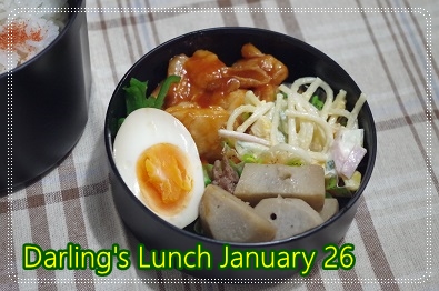 切干大根の煮物とごぼうサラダを添えます。