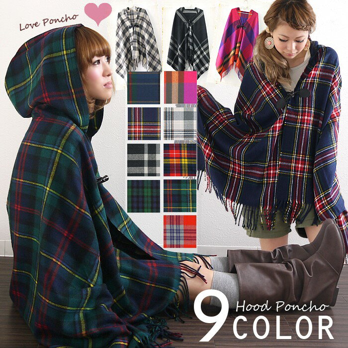 カラーもデザインもひとつひとつ違うチェック柄ポンチョ。豊富なバリエーションからぴったり自分らしいデザインを選べます。フードがついたうしろ姿もCUTEオーラばっちり★前側についたトグルもCUTEポイントのひとつです。ざっくり羽織ってかわいさ満点★フリーサイズのポンチョなのでインナーは薄くても厚くても大丈夫。 秋、冬から春へとロングシーズン活躍します。チクチクしないやわらかい手ざわりで、素肌にふれても全然気にならないやさしい着心地です。 9月上旬予約★全9色★トグルボタン チェック柄フード付きフリンジポンチョ★フードポンチョ/2WAY/3WAY/大判ストール/マフラー/ブランケット/コート/マント/韓国製/アウター/ニット/レディース【YDKG-tk】