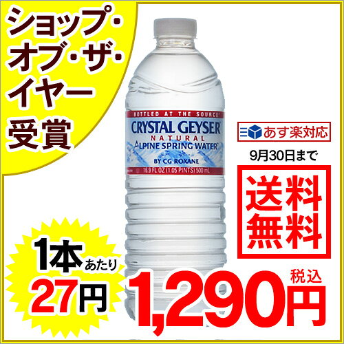 「クリスタルガイザー ミネラルウォーター 500ml*48本入り(並行輸入品)」は、山岳地域に建設された工場において、すぐれた天然水を採れたその場でボトリングし、新鮮さ、純粋さ、美味しさを保ったピュアウォーターです。アメリカ合衆国カリフォルニア州のオランチャ、もしくは、マウント・シャスタの自然保護地域に湧き出した天然水を使用しています。 クリスタルガイザー ミネラルウォーター 500ml*48本入り(並行輸入品)[クリスタルガイザー Crystal Geyser 水 ミネラルウォーター 軟水 防災グッズ]【送料無料】【あす楽対応】※1個以上~20個まで送料無料
