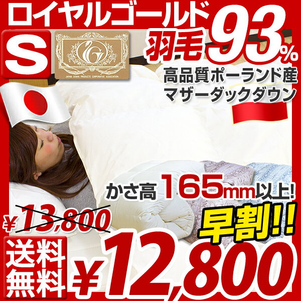 【エントリーでP5倍】【値下げ】【送料無料/即納】【あす楽関東】 国産 【ロイヤルゴールドラベル】 かさ高165mm以上 羽毛布団 シングル 日本製 国内パワーアップ加工 ポーランド産 マザーダック ダウン93% 羽毛掛け布団 布団 掛布団 羽毛ぶとん 5年保証