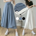 プリーツパンツ フレア スリット ガウチョ スカンツ ワイドパンツ【20営業日で発送予定】プリーツパンツ フレア スリット ガウチョ スカンツ ワイドパンツ ウエストリボン パンツ ボトムス レディース 春 夏【メール便送料無料】