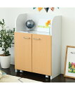 カウンター下におもちゃなどが収納できるキャスター付ボックスラック。扉内のキャスター付ボックスに遊んだおもちゃをお片付け、扉内に収納すれば見た目もスッキリ。可動棚収納付なので、スケッチブックや文房具の収納にも最適です。キッズ収納 ランドセルラック ボックスキャスター付き 白×ナチュラル 幅60cm ニッセン nissen