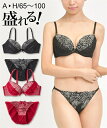 ローズ柄コードレースでエレガントなブラ&ショーツセット。 ギャザーの寄ったチュールネットがやわらかな印象をプラス。 下厚モールドカップ+取り外し可能パッドで美しい谷間をメイクブラジャー ショーツ セット 大きいサイズ レディース コードレース ブラック/レッド E85_LL~F100_5L ニッセン nissen