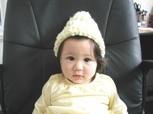 そういえばこないだ、日本のばあば(私の母)からEMSが届いた。お母さんありがと~~!中には、私らの好きなもの(さきいか、大福など)が入ってたんだけど、ミジンコちゃんの、ベビーボーロや、服まで入ってました!!うちの母は手先が器用で、小さいときは、手編みのセーターとか作ってくれました。なつかしいなぁ。。送ってくれたのは、こちら↓ニット帽。パパママのお気に入り。ミジンコちゃん、薄い色(薄い黄色やピンク)が似合うみたい。↓ これはジャケット。 でもでかいので、1,2歳になったらちょうどかな?あと、毛糸の靴下もあったのだけど、足のでかいミジンコちゃんには、ちょっとキツキツでした(汗)はけるのは今だけかな??↓ これは、店で買ってくれたやつ。 かわゆい~~~何回も言うけど ↑の写真、私に激似!!!!そういや、前回の日記で、おすわり特訓のこと書きましたけどね。なんか、急に出来るようになったし!!(笑)バランスとるのが、上手になって、ある日突然!!きゅ~~~っと斜めに倒れそうになっても、クイッと元に戻る!(笑)まだ、いつでも手を出せるように待機してるけど、もうすぐいらなくなるかも?これが証拠写真だ!! ↓どお?? ↓