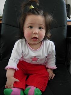 最近、洋服づいてるJJ一家!なんと、オーストラリアに住むヤツ父が、またまたミジンコちゃんの洋服を送ってくれました~!どうもありがとう!!ちょっと好みではないのだけど、、(すんません)貧乏な我が家は、大助かり!(笑)なので、さっそくファッションショー開始!!!↓ この赤いズボン、かわゆいの! ママはこれだけは、気に入りました。↓ ピンクの水玉半ズボン。↓ スカート。↓ ワンピース。残念ながら、ミジンコちゃん、スカートがぜんぜん似合いませんっ!!!!!ショッキング、、、(汗)ま、でも、ありがたくいただいておきます!そして、先週末、ショッピングモールで、子供服のバーゲンがやってたので、ママは行ってまいりました!!夏用に半そでを2枚買いました!各5ドルちょっと、、、今、ドルが激安なので、日本円にすると、300円くらいかな?安っ!!!!↓ こちら♪部屋がちらかってて、すみません、、(汗)それから、ダウンタウンに行って、これ買ってきたの ↓髪の毛くくるゴム。日本のダイソーから商品を仕入れてる、日本人経営の雑貨屋で見つけたの~~!かわゆい~~♪こういうかわいいのって、さすが日本だよな~~田舎国の子供用のゴムって、すごいよーー怖いよーーーなんか気持ち悪い物体がくっついてるだけ、、、、(汗)ぜんぜんかわいくない!!なのでママは大満足でした!(もち、こっちでは100円じゃないんだけどね、、(汗) でも、今のレートに換算したら200円ぐらいかな?)あーー私も服ほしいよぉ~~~~