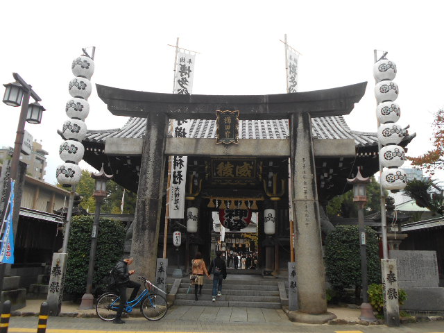 大阪北区 堀川戎神社さん 西宮神社や今宮神社さんのように大きく無く小さなお宮ですがぁ。えべっさんの日はぁたくさんの人がぁお見えです。おじさんも自宅から歩いて行きましたぁ。商売繁盛で笹持って来い。商売繁盛で笹持って来いぃ。おじさん参拝祈願してお神酒も頂きぃ。良い気分です。2か所でお神酒飲みましたぁ。ああぁ。お神酒 お心持ちでぇ。いくら払えばぁ。千円。百円。あぁ迷うなぁ。おじさん。115円払いましたぁ。良いご縁が有りますよにぃ。美味しいお神酒ぃ。福娘の皆さん。おじさん、またまたお神酒樽酒を頂きましたぁ。美味しいなぁ。良い気分です。テクテク。