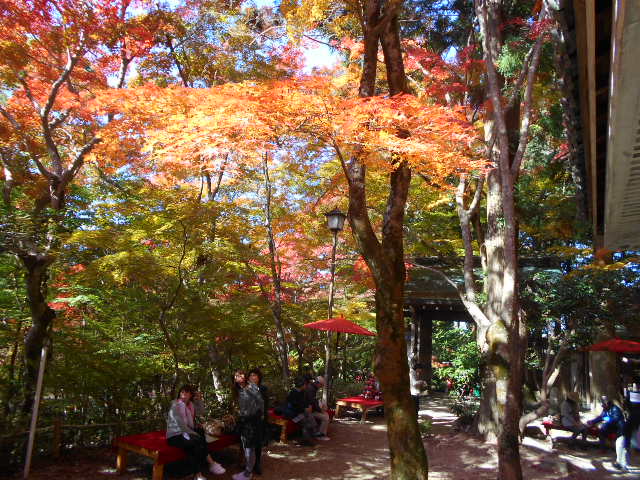 北野天満宮のもみじ苑へと行きましたぁ。何時もの様にたくさんの人ですがぁ。まぁ比較的ゆっくり紅葉を見ることが出来ましたぁ。紅葉はぁ太陽の光を浴びてキタキラ輝いていましたぁ。おじさんもキョロキョロウロウロテクテク続きです。お茶と上七軒老松さんの和菓子頂きましたぁ。うぅん、何とも言えないコントラストです。ありがとうございましたぁ。紅葉めぐりまだ続きますよ。テクテク。