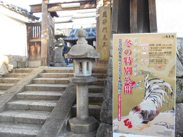 京都 建仁寺塔頭両足院さんへ行きましたぁ。9日から冬の特別公開です。7月に半夏生を見に行って以来の訪問参拝です。今回はご存知伊藤若冲の一服の軸を拝見に訪問させて頂きましたぁ。京都錦市場の商店の息子さんが天下名高い画家に。京都の街は若冲だらけですね。両足院の若冲はぁ。雪梅雄鶏図 250年の歴史が流れてますがぁ。色鮮やかに残ってましたぁ。写真撮影禁止にて残念ですが、実写出来ませんでしたぁ。看板図を参考に。おじさん 誰もいないお庭をゆっくり見させて頂きましたぁ。若冲のお軸鶏図も見てそれではぁ。 お隣のお寺さん西来院へ 同志社大学の書道展を見に、テクテク。