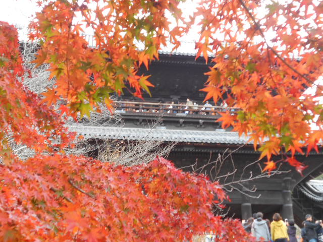 京都の紅葉で有名な東福寺通天橋。今年は立ち止まっての写真撮影は禁止とされました。おじさん立ち止まらずにパチリと歩きましたぁ。もう人、人ですねぇ。5年連続訪問です。今年の紅葉はぁ少しおかしいですねぇ。ぱっと色ずいてパット散って行きましたぁ。不思議。東福寺さんはぁ。何時もこの時期は満員御礼ですねぇ。少し疲れましたぁ。次行きます。テクテク。