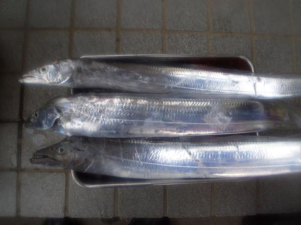 昨日我が家のじいじいと一緒に久里浜のタチウオ釣りに行ってきました。船は「ムツ六釣船」です。「平作丸」にもよく行くのですが気分がなんとなくこちらにしろといっていたのでムツ六に乗り込みました。近所に住んでいる常連さんが「今日は混んでいる」と言うのでトモを譲っていただきました。その常連さんは船のアシスト役につきました。見上げたものです。左片舷9名、右舷8名、計17名での出船です。結構詰まっている方だと思います。平作丸の方は二船出すので座り座間隔に余裕がありましたね。じいじいは左舷トモから二番目です。ジョンリーはトモに座れるとは考えていなかったので超ラッキーです。さて釣果の方は、激シブでした。それでも型は良型が多かったです。1メートル弱のタチウオの引きは結構ドキドキものでした。水深は120~135トルで当たりがありました。広範囲に探ってやっと当たりを取ったという感じでした。途中電動リールが全く動かなくなるという泣きそうなトラブルもありましたが、しばらく手釣りでやって電源が完全に切れた頃再度接続したら復活しました。一体なんだったのだろう? タチウオは刺身、煮物、塩焼きなんにでもあうので大好きな釣り物です。冷凍保存にしても味があまり変わらないのも魅力です。 数的には5本と貧釣果でした。まあ食べるには充分ですが\(^o^)/ちなみにトップは10本です。さてこちらはどんこです。実はこちらに時間を割いてしまったのでタチウオが貧釣果に終わったという事もあります。水深160メートル前後の底で釣れました。味噌汁、煮付けにしたらグッドな魚です。格好は悪いけどこれがなかなか美味なのです。昨日はナメロウで食べてみたのですが肝がねっとりしていていいんですね。どんこの魅力はこの肝にもあります。これがあるなしでは旨みの重さが違うです。肝のないアンコウを想像していただければわかると思います。どんこは14匹取りました。こちらは断トツです。型は小さめですがジョンリーとしての記録です。赤いのはカサゴの仲間です。これはカルパッチョにします。今日の午前中一杯使って仕込み終えました。昼はこの魚達を使ってどんこの味噌汁とタチウオの塩焼きを食べました。海釣りも行き始めるとハマってきますね。なんか海に夢中になっていた頃を思い出しました。さて今日は釣れたかな?
