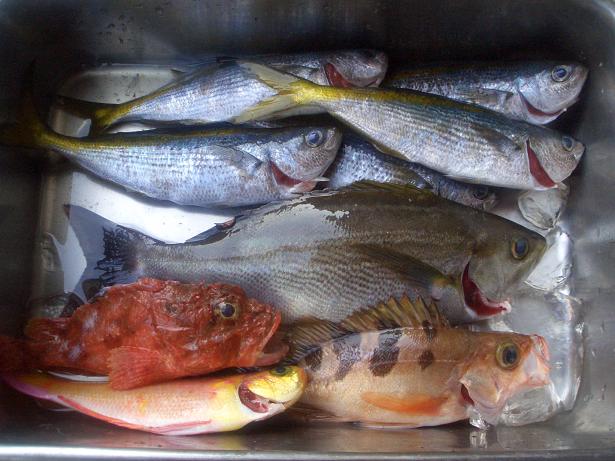 仕事中、突然レクさんより電話が入って「水広丸行かない!」考える間もなく身体はどうやったら行けるのか、行動を開始しました。外に行ける状況を作り会社事務所を脱出して準備に取り掛かりました。普段は頭が働かないのに遊びとなったら脳が活性化します。げんきんだなぁ。幸運な事にメーデーの代わりといっちゃ何ですが木曜日有給を取ることが出来ました。そんなわけで今まったりとした時間を過ごしています。かあちゃんたちはディズニーシー。車混んでなきゃいいけどな。で・・レクさんのところに寄って車に便乗させてもらってレッツ・ゴーです。網代の水広丸に到着すると既にユジタルさんがスタンバっていました。波も穏やかで最高のコンディションです。我々は左舷ミヨシに並びました。船長から「今日は最初から飛ばせよ!」開口一番にプレッシャーとも取れるありがたいお言葉が入りました。昨昨年も、昨年も鯛を釣ったのは一番最後、前回のイサキも皆様が釣った後ようやくゲットというように出遅れ組みだったからであります。最初は鯛でスタートしましたが、潮が悪いのか口を使ってくれません。常連さんの話では表層と低層での温度差があまりにも違いすぎる。低層の温度低下が食い渋りの原因だという事です。実に説得力のある話でした。食い渋りのため、すぐイサキ狙いに移動が告げられました。イサキの場所は餌取りが激しいので得意のウイリー仕掛けに変えてみました。すると一発でタカベが当たりました。投入する度タカベゲットです。タカベは群れで泳いでいる魚なので場所が合えば入れ食いになります。少し棚をあげてイサキを狙っていると「ガツン!」ときました。レクさんも同じ場所でイサキゲットです。ユジタルさんも冷静に「来たよ!」ってな感じでイサキを抜きあげていました。 ユジタルさんとは隣だったのでゆっくり話をする事が出来ました。船上コミュニケーションです。仕事の関係かユジタルさんの携帯は鳴りっぱなし。でもクレームではなかったようなので良かった、良かった。ジョンリーも経験があるのですが、平日に鮎釣り行って昼上がりして携帯覗くと15件程クレームも含めて伝言が入っていたケースがあったりしたもんですから、遊びの中に仕事が介入してくるというのはあまり気持ちのいいもんじゃありません。無風に近い状態のせいか食い渋りが続き、船長はその状況を打開すべくオオアジ狙いにも行ってみましたが不発。ラストは鯛狙いです。何人かの人が鯛をゲットする事が出来ました。「何か大きいの掛かったよ」ユジタルさんがメジナをゲット。40センチ前後の立派なメジナでした。再びユジタルさんが「重い」といって水面に顔を出したのが星ザメ。たもですくおうとしたら船長が「ダメダヨ!すくっちゃ」「うまいのになぁ」心の中で〔口に出していたかも〕思いながらユジタルさんに了解を取って放流としました。ジョンリーは最後まで鯛微笑んでくれませんでした。ついに水広丸にて鯛ノーヒット経験してしまいました。丘に上がって腹が空いたので、ガストで昼食を取り楽しい一時を過ごしました。そこで解散。眠い状況でしたが、レクさん、車の運転ありがとうございました。 さてこの素材で、これから何をつくろうかな。
