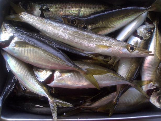 きのこカフェさんと天目さんと三人で沖右ヱ門丸のライトウィリーへ行ってきました。今日は久しぶりに海も穏やかで絶好のコンディションで釣りが出来ました。海はひろいや大きいや。富士山も見えたし・・気分転換には最高でしたね。 仲間と行くのは楽しいですね。天目さんはオニューの竿を新調して気合満々。イシダイもゲットしちゃうし・・・絶好調でした。詳細は沖右ヱ門丸の写真集に出ています。おいらは背後でしっかりお茶目に写っています。で釣果の方ですがアジは大量でした。おいらはアジが釣れるとすぐヒラメ仕掛けに変更。しかし・・・し・・か・・し「アチャー」やっちゃいました。アジを餌に海水に投入したのは良かったのですが肝心の仕掛けを道糸にドッキングしておらずものの見事にアジと錘のみがが海底に沈んでしまいました。気持ちが焦っていたんでしょう。右舷ミヨシでヒラメが釣れたよ^^に焦ったので気持ちが動転していたのでしょう。ま・・要するにヒラメはスカであります。「ガクシ・・」しかしアジは絶好調。水深73メートルの場所でのアジ狙いになってからほとんど入れ食い状態。なんだかアジ釣りに来たような感じでした。アジは船中で一番カフェさんが釣ったものと思われます。おいらはまあ・・そこそこ。 数えたら31匹アジを釣っていました。カマスが釣れたのはご愛嬌です。晩飯の一品アジのたたきです。釣りたては新鮮でいいですね。まったく臭みも無くいくらでも食べられる感じでした。