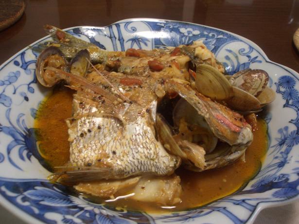 nogumaguさんに刺激されてアクアパッツァをかあちゃんに頼んで作ってもらいました。作ろうと思えばできるのですが〔負け惜しみじゃナイゾー!〕平日は時間がありません。まあ作ってもらった方が美味しさもひとしおなんですけど・・・この料理は人気があり娘もしっかり食べていました。にんにくとかワインとかオリーブオイルとか使った料理はやっぱ洋風の味がします。 本当は丸ごと撮りたかったんですが食べるのが目的なので皿に入りきらず切ってしまいました。鯛は本当にどんな料理にも合います。この2週間、鯛と遊び鯛の持つ食味にしびれっぱなしでありました。