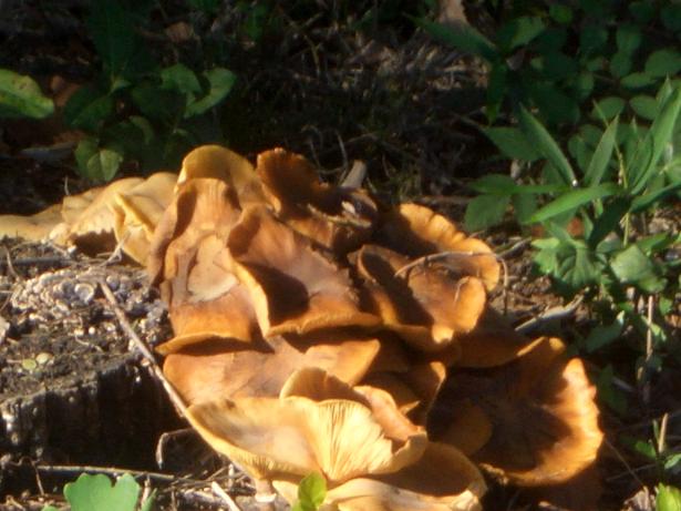 昨日は「雲の上のキノコの会」の忘年会でした。日本酒とカラオケでの最後のウーロンハイが効いて福生についた頃はヘロヘロでした。まっこと楽しいことの後にはズキーンが翌日待ってます。まあそんなわけで起きてからアニーを散歩に連れて行ったのが午前9:00頃。遅い出足となりました。散歩しながら脳裏を駆け巡ったのがコメツガさんよりの情報。「○○基地周辺にはナラタケがごっそり出ているよ」考えるより早くコメツガさんに連絡。思いは同じで既にコメツガさんは目的地に向かっていました。アル場所で落ち合いテクテク、ナラタケを見に行きました。ありました。有刺鉄線のむこーーーーに・・・・・ かなりでかいナラタケの群生でした。バクサレナラタケもありましたが結構な数出ていましたね。 ぼやけているのは相当俯瞰して撮ったためでもあります。全てオーバーザ有刺鉄線。よじ登っても見ましたが・・・朝刊に載るのもイヤだったので指を加えて見ているだけでした・・・・脳裏にはしっかりしまいこめました。それにしてもなぁあのフェンス・・・どーにかならんのかなぁ。それにしても歳なのかなぁまだ酒が抜けません。