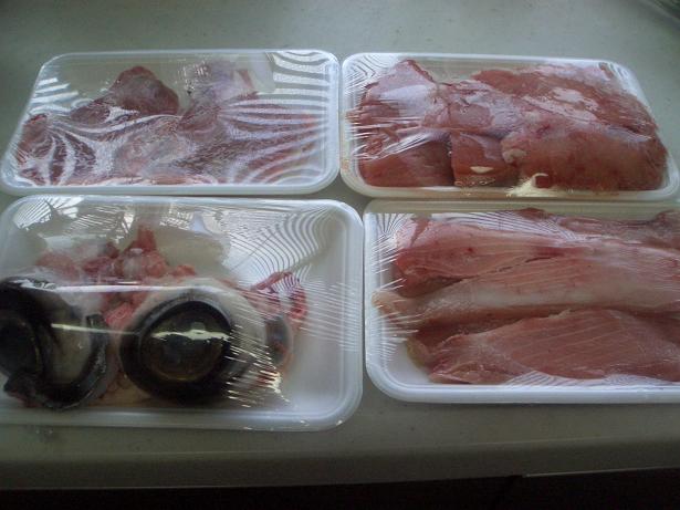 ○○基地でふらふらしながらナラタケを指を加えて見た後、ジョンリーは日の出イオンにかあちゃんと買い物に出かけました。目的は柿。酔い覚ましの柿を食べるためです。柿を買ってたら突然カランカランと何やら鈴が鳴ったので近寄ってみると、なーなーんとマグロの解体ショーが・・・・これは見なければいけんべーと見ていたら、やがてマグロの頭の部分が切り下ろされて「買わんかぁ!2,000円」とほざくじゃあーりませんか。むぅぅぅぅ買おうか・・・どうしようか、散々心の中で葛藤!葛藤!その後カマが切り下ろされてそちらはあっという間に嫁いでいっちゃいました。しかし何故か・・・頭だけが売れ残っていました。頭はやがて頬の部分・・等・・々・どんどん解体されていきました。切っている人が「脂凄いよ!絶対お得だよ!美味いよぉ!」連呼です。むぅぅぅぅ欲しい、欲しい!気がつくととっても小さい声で「買った!」とつぶやいていました。切り落とし人はその声を見事に見逃さず「兄さん!買いだね!買い」しっかりクロージングがかかりました。ここでよーやく元気な声で「かったぁぁぁぁ!」かあちゃん曰く「全く決断が遅いんだからぁ」「だって2,000円だよ」反論しようと思いましたがケチ臭い心の持ちようを悟られてはならずと感じ「得したね、これ重いよ」ポジ発言に終始しました。頭の中でまだ食べられそうな部分あったのですが・・切り取った部位以外はゴミ箱に捨てられました。「それも欲しい」と思ったのですが頭を解体するのは厳しい。断念しました。ま、こんな感じの部位です。 お持ち帰りトロの部分寿司にして食べましたがこれが美味いのなんのって・・長崎産のクロマグロでした。舌に残るへんな甘さは全くなく・・旨みだけがいつまでも舌に残っていました。 結果としてとっても安い買い物でした。生で上がったマグロは本当に美味いです。まあ、そんなわけで二日酔いにもかかわらず向い酒。しかし悔いの残らない向い酒でした。懲りないなぁ!