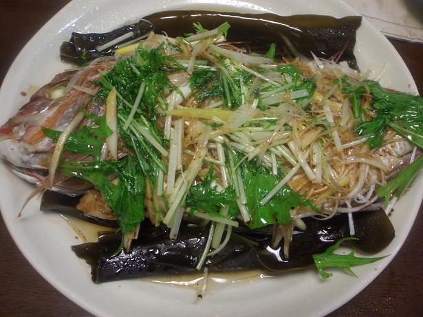 多分中華料理の技法だと思うのですが鯛を昆布で引いて蒸します。その後取出し細切りネギを鯛の上にこれ以上はないというくらいかぶせます。そこにぐつぐつの油をジュワーってかけて完成です。 これが美味いのなんのって先回鯛茶漬けもサプライズの美味さでしたがこちらも負けてはいません。鯛って本当にたくさんの料理法がありますね。どう食べても美味しいのが鯛!おめでたいという由来わかる気がします。