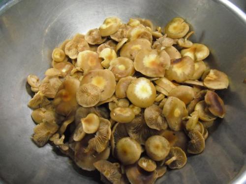 まず最初にコレラタケではないかと疑心暗鬼になった正式名称不明のナラタケです。軸が短いのでナラタケモドキではありません。キノコ図鑑で調べても類似写真がありません。はてこれはなんと言うナラタケなのでしょうか?さてキノコ料理です。キノコを採る目的はやはり美味しく調理することにあります。御山で種類を覚えてしまえば、比較的誰でもそれなりに採れるキノコたちです。愛すべき天然キノコです。朝はキノコシチューとコーヒーとパンで始まります。チャナメ、ナラタケとちょっぴりのハナイグチが入っています。シチューの色が黄色くなっているのは、かぼちゃを入れているからです。肉は基本鶏が好きなので必ず入れています。アカミモタケはボイルした後冷蔵庫に入れ調理する時取り出して細かく砕き料理します。卵と相性が良いキノコですね。苦瓜貰ったのであわせて料理してみました。砕いているので存在が見えにくいのですが、とても美味しいくてはまります。アカミモタケは好みにもよりますが砕くと旨みが開花する気がします。左はハナイグチの煮付けです。アブラアゲを入れただけのシンプルな煮付けです。保存もよく、これは酒の肴に重宝しています。たくさん食べるとゲンナリする恐れがありますので、ちょびっとずつ食べるのがコツです。このチョビットはクロカワにも当てはまります。最後がカヤタケのパスタです。ジョンリーはこのキノコが気に入っています。日持ちもするし、チーズと相性がとても良いからです。パスタは必ずニンニクを弱火で炒め香りを出してからカヤタケを投入します。パスタって塩と胡椒で味付けするととても按配が難しいのですが、ようやっとコツを掴みました。つまりアルデンテの際、あわせて粉チーズも投入するのです。結構大量に入れるとこれが格別旨みがアップします。最後にオリーブオイルを再度振りかけて完成です。熱々が好きな方はしばらく絡めていても良いかと思います。キノコの前半はMを真剣に狙っていましたが後半は雑菌キノコを楽しんでいます。結論として雑菌採りは飽きないですね。タマーニ大物が採れる。そんなキノコ採りがやはり一番大好きです。