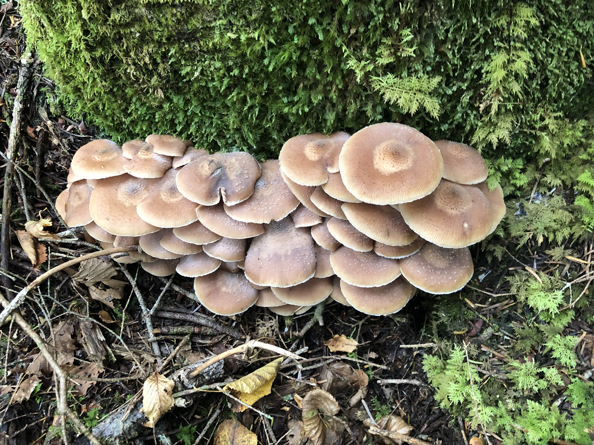 小さなせせらぎに向かって倒れ込んだ木には、ムキタケが沢山。 前日が雨だったせいか…