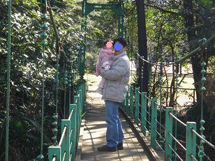 21日から札幌の私の母が遊びに来てくれました。父の東京出張にあわせて5泊6日です。そして今日は父も自宅に来てくれました。朝の7時半にまだ寝ていましたけど予定では11時に新宿でランチでしたが、インフルエンザが流行っている時期ともあってわざわざ自宅に来てくれました。…なのでお天気も良いので、みんなで砧公園へ出かけることに。初めてこんな吊り橋があるのを知りました。和やかな風景ですよね。ランチの時間までお店で「シャボン玉・ボール・たこ」を買ってもらいみんなで遊びました。りーちゃんは最近自分でシャボン玉を作れるようになりました見えない所でおじいちゃんが凧揚げ頑張っています。私も○年ぶりに凧揚げをし、夢中に走って疲れてしまいました砧公園の中にある世田谷美術館のレストラン。人気があって人がいっぱいでした。次はいつ遊んでもらえるかなぁ?楽しかったね。