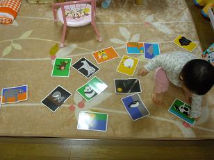 自宅で続けているWKE(Worldwide Kids English )の教材の中に、アニマルカード&マットがあります。こちら『Stage2』で届いたEmotional toysはりーちゃんのお気に入りです。各16枚づつあるのですがDVDと連動しているので、全身を使って動物の名前を覚えたり、鳴き声を真似ています。ママの中でのりーちゃんの難易度としては初級:monkey・panda・penguin・koala・lion・fox・gorilla中級:hippo・cow・kangaroo・sheep・elephant上級:giraffe・snake・zebra・wolf今ではシマウマ(zebra)以外は上手に発音できるようになりました。アニマルカードで遊んだりアニマルマットを並べたり…でもすぐにバラバラ動きが激しいもので 「Junp to the Lion」「Touch to the hippo」など、りーちゃんは声に出してドタバタやっています。ママは専らハッパがけ「Good job,りーちゃん」「Next」って自宅でも少し運動不足解消になるかな