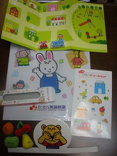 4月からスタートのヤマハ英語教室。「3月下旬には教材が届くのでご連絡します」と言われたまま何も連絡なしで、ちょっと不安になってお店に電話をしたら、「もう到着していますけど?」とのこと。「はぁ」って感じで、ちゃんと連絡くらいしてくれたっていいじゃない何だか前回の電話応対と言い、今回の連絡ミスといいちょっと気分が悪い感じしかも自宅郵送はできなくて店頭受取のみだし。。。他の教室では事前にオリエンテーションがあったと聞いたし、こんな直前になって日程変更の連絡があったりして(まぁその日は予定が入っていなかったからいいけどね。)うーん、なんかスベリダシが良くない雰囲気です。でも気を取り直して、今日頂いた教材を早速開けてみました。こんなの簡単じゃーんって思っていたけど、以外と「ホウホウなるほどね」とママの勉強になりそうです