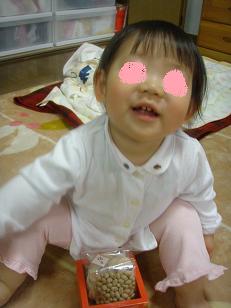 節分の日の今日は、パパに早く帰宅してもらうことにしました。だって鬼役がいないとつまらないし……と言うことで、パパは頑張って20時前に帰宅の約束。気分を高めて日中にシュンちゃんママから頂いた節分のお豆を見せてあげました。豆まきとは何かまだ分からないよねりーちゃんはお風呂に入りもうそろそろお眠りモードですが、いざ節分行事の始まりパパが帰宅し、こんなものを買ってきてくれました。私は初めて見ましたが、柊(ひいらぎ)と言います。『柊は大豆の木とともに束にしていわしの頭をさし、悪臭と共に柊のとげで鬼の目を刺し、鬼を退散させるといいます。玄関・門戸へかかげ、約払いをします』と説明書きがありました。いわしの頭はありませんでしたので、ただお飾りデスそれにしても悪臭ってそしていよいよ「豆まき」「おにはーそと、ふくはーうち」お豆を何回も拾っては投げて、お掃除大変、寝る前にドタバタの大興奮「豆まき」の言葉、少しわかったかな。夜は興奮のせいで寝つきが悪く、ママもまさかのダウンパパが寝る時にハッと起き、部屋の片づけに行くと…まさかまさかのお雛様がビックリパパは一人で散らばった豆まき掃除&お雛様の飾り付けをしてくれました。スゴイなぁパパ、どうもありがとう