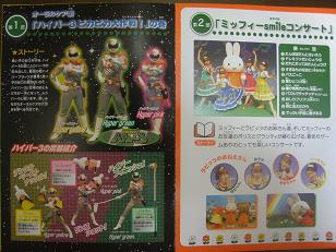 日曜日の午後、家族で渋谷へお出かけしてきました。以前、スーパーにあった懸賞応募に当選したもので特にミッフィーが好きなりーちゃんの喜ぶ顔を見たくて楽しみでしたサンスターさんのファミリーミュージカルです。家からはバスで1本で行けるのですが、片道約40分じっとしてられない1歳10ヵ月のりーちゃんのために、4冊の絵本とおやつ、飲み物と準備万端で行くもののやっぱりずっと相手をするのは疲れました渋谷に行くのもカレコレ何年振りかという感じで、バスを降りてから全然道が分からずパパについて行きながらキョロキョロやっと渋谷のC.C.Lemonホールに到着2部制になっていて、前半はゴーオレンジャーみたいなヒーローvs悪者(敵)後半はお待ちかねのミッフィーでもりーちゃんは全く興味がないと思っていた前半に釘付けでしたしかもヒーローが負けそうになった時の合言葉「はみがき、だいすきー」はうまく言えなかったけど身を乗り出して応援意外な一面を発見しましたでもやっぱりミッフィーも好きみたい休憩時間には売店でC.C.Lemonを購入して気分転換りーちゃん、炭酸ジュースに興味があったけど一口飲んで思わずダーお土産でもらったミッフィーの歯ブラシは一番のお気に入りで今でもご愛用しています