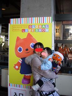 WKE(Worldwide Kids English )のGlobal Live Showが4月に開催されるそうで、早速HPから申し込みをしました。1年に3回(4・8・12月)の公演があるらしく、今回は4月分の予約です。りーちゃんは昨年12月に初めて参加しましたが、耳慣れた音楽と親しんだキャラクター、外人さんのキャストに大興奮していました前回の様子はこちら…*会場の外で*会場の外で*会場内(始まる前です)今回も是非連れて行ってあげたいと思います会場に集まるお子様の手には、好きなキャラクターのパペットがありました。もちろんりーちゃんもクリスマスシーズンだったので、Mimiちゃんのパペットにサンタの帽子やリボンなどママのお手製でちょっとだけ可愛くしてあげました今回はどうしようかな~
