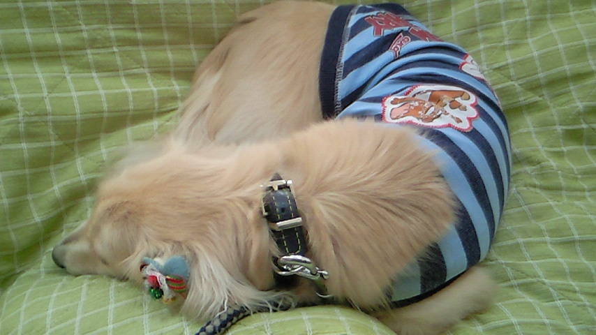 膝の上でちび(犬)が睡眠・・・5kgが膝の上に2時間・・・結構辛かったです(恥)