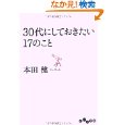 30代も後半の後半?位の私ですが著者が大好きな「本田健」さんだったのでついつい買ってしまいました。特に「変えられることと、変えられないことの違いを知る」「お金と真剣に向き合う」「なりたい40代を想像しておく」「人生の目的を知る」というところは自分の30代と比較できてとても参考になりました。30代というのは私にとっても家を建てたり子供が産まれたり生涯やりたいことが見つかったりなど盛りだくさんの10年になりました。(すでに過去形?)自分の30代がこれから始まる人もすでに終わる年代の人も振り返って修正することも出来ると思うのでこの本を参考にしてほしいです。文庫本で180ページありますが、2日くらいですんなり読むことが出来るとても読みやすい本です。ちなみに20代・40代の本もあるようなので違う世代の方はチェックです!