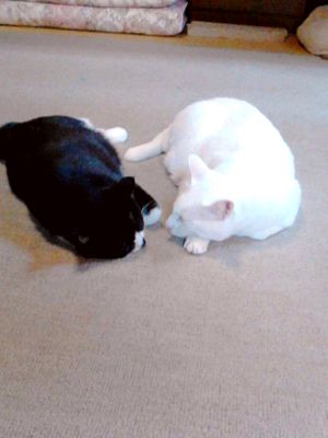 スマホにしてから、便利ことは、シャッターチャンスを逃さないことヽ(^。^)ノなかなか、撮れないシーンが、撮れると嬉しいものです。で。。。今回ばっちり、私の息子と娘のキスが撮れました ・・・・・・近づく・・・近づく・・・・・・ ・・・きゃはっは!モコちゃん、なんか腰が引けてる~ いつも、キスやじゃれ合いはするけど、この写真は、とっても面白い! 2匹の性格が出てるというか。。ヽ(^。^)ノ そして何しろ、2匹の大きさの違いが、分かりやすい もこちゃん、5歳なのに、ちっとも大きくならず。。 空くん、12歳だけど、でかすぎ(>_