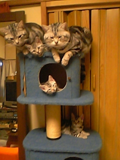 早いもので1週間が過ぎました生まれた子猫は手の平サイズほどに成長・・ブラウンタビーが2匹っぽい?2匹はメス♀で残り4匹がオス♂って感じですがまだしっかり判別もつきません。キキが寝床にいつの間にか入って子猫と母猫と一緒にいるってことも・・ぎゅーぎゅーなのにこらーって感じで怒ることもしばしばですまだまだ目が離せません