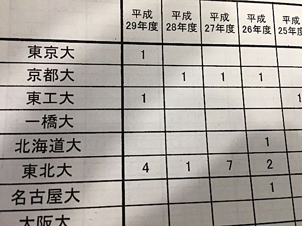 下妻一高、今年は東大1名、東工大1名、東北大4名、筑波大14名。その他に難関大学としては神戸大、東京外語大などに合格者が出ています。 茨城大学33名、宇都宮大学11名、埼玉大学8名、千葉大学2名、このあたりは厚みがあると思います。 昨年も茨城大学32名、宇都宮大学12名、埼玉大学10名、千葉大学4名なのでほぼ変わらずです。 近隣の国立大学は学部にもよりますが、みなさんが思っているよりずっと難しいです。 校長先生とお話しをしたのですが、「昔のような国公立押し込みはしていない。」「現役にこだわらず可能性のある生徒には上位大学へ挑戦させるようにしている。」とのことでした。 この方針には賛成です。7、8年前は「どこでもいいからとにかく現役で国公立」という感じがしました。 生徒の可能性を限定してしまうことには疑問だったのでこの方向で頑張ってほしいと思います。 私の独断的な予想では、今後、一時的に古河中等の影響を受けるかもしれませんが、また復調するはずです。 ただし、それは県西地区全体の生徒数と小・中学生の学力が維持されればという条件がついてしまいます。 現実的にはそれは無理です。 そこで注目したいのが、出身中学校です。守谷の御所ケ丘中から今年は10名、昨年は14名入学しています。もっと南にあるけやき台中も今年は3名入学しています。 この他、今年はつくばの春日中、谷田部東中、高山中からも入学者がいます。もともと北部工業団地(大穂中)、西部工業団地(豊里中)の生徒はとても多い。じんわりと枠が広がって小中学生が増えている地域まで手を伸ばせれば。 上手くこちらに範囲を拡大できれば進学校として生きながらえることが可能になってくるのかなと思います。この3、4年が辛抱のしどころ、分岐点で、非常に重要な時間的ポイントに立っているように見えます。 難関大学合格者数 毎年、多少の変動はあれど旧帝大や国立医学部に5名〜8名、筑波大に10名〜15名。合わせて20名。この維持がものすごーくたいせつです。カリキュラムとか先生の教え方よりも「頑張れば自分もできるかも。」と現実感をもてる環境で日々学習できるか。伝統ってそういうことです。 この表の中にはウチの塾生もいます。中学時代の実力テストの点数は400を超えたり超えなかったり。ただし、「この子の学力は高校へ行ってからの学力だな。」とずっと思いながら指導してました。学力の枠組が大きかった。なかなか、能力の広さと深さまでは県立入試レベルだと測れないのですよ。 出身中学校。意外と守谷の生徒もいます。御所ケ丘は一大勢力。