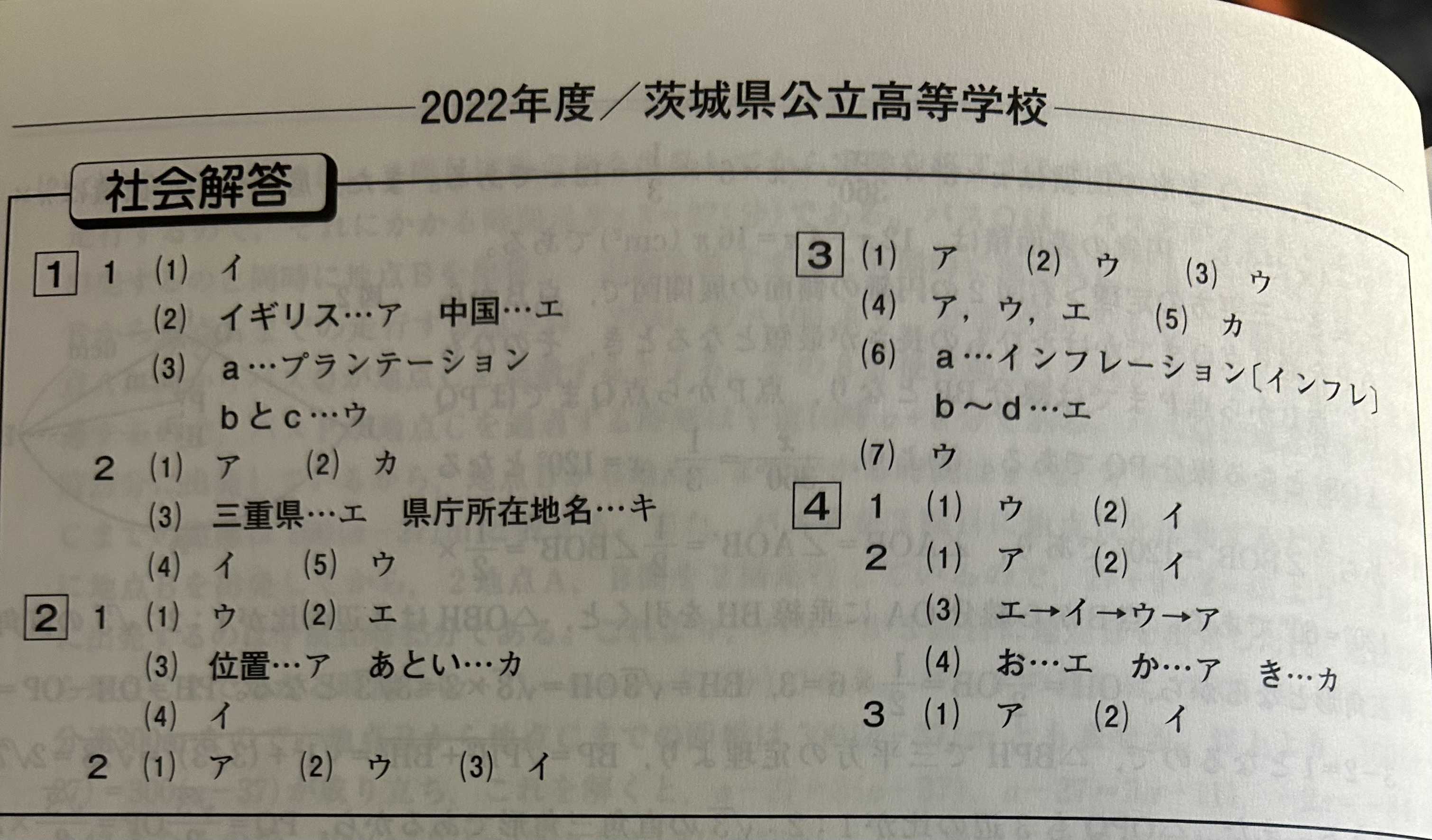 たとえば以下は茨城県教育委員会が公開している2021年度と2022年度の社会科の模範解答です。