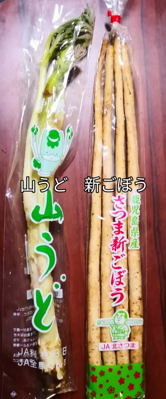 スーパーで春の野菜の新ごぼうとうどを買いました