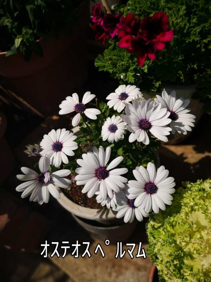 オステオスペルマム 花が白くて花芯が赤くて