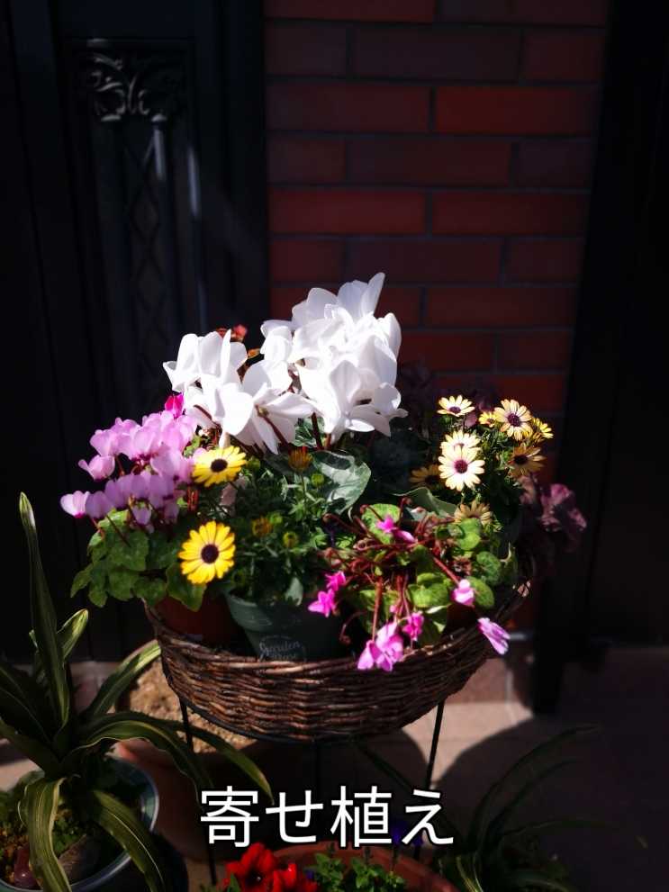 民家の玄関前にあった寄せ植がとってもキレイでした