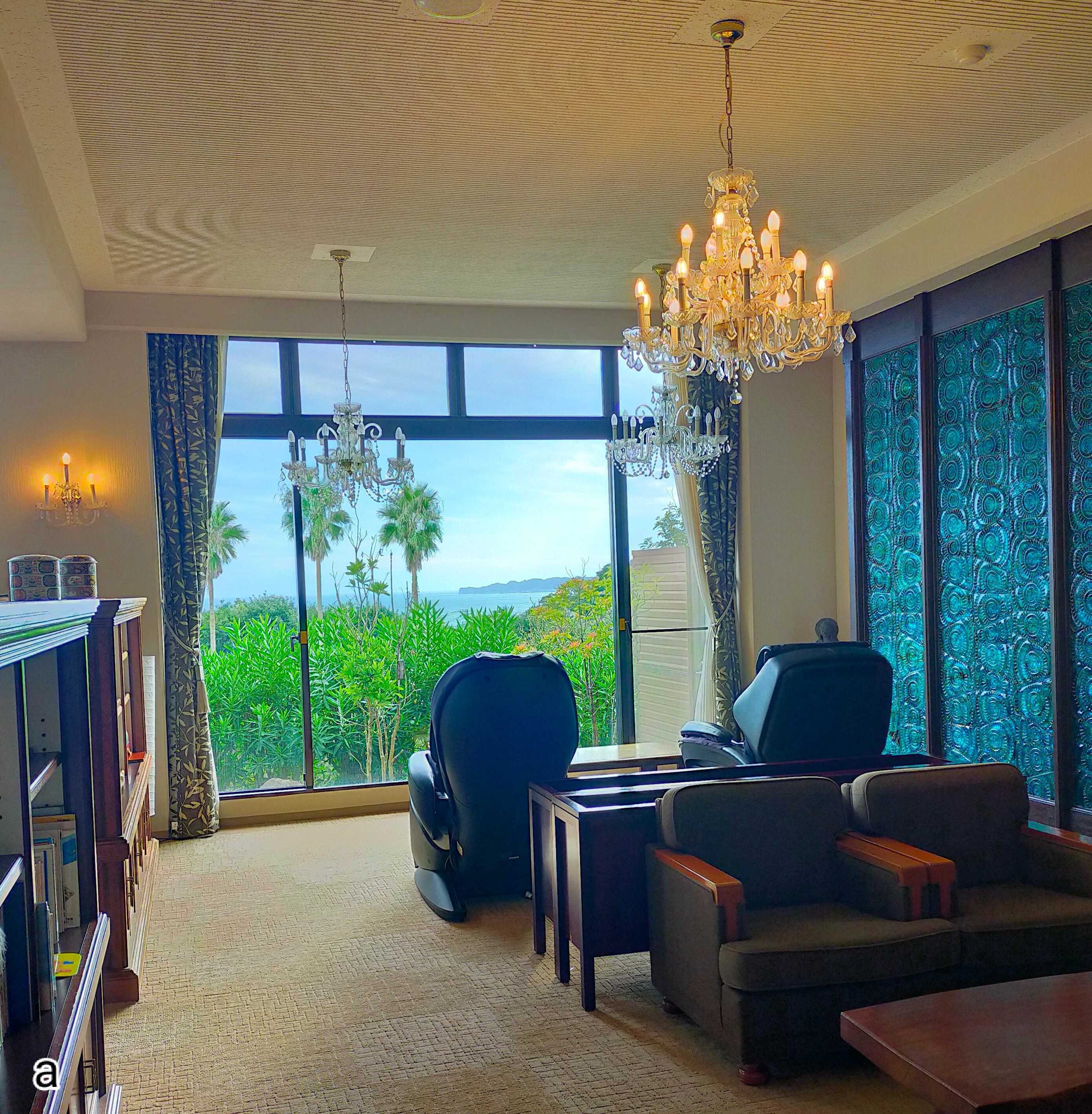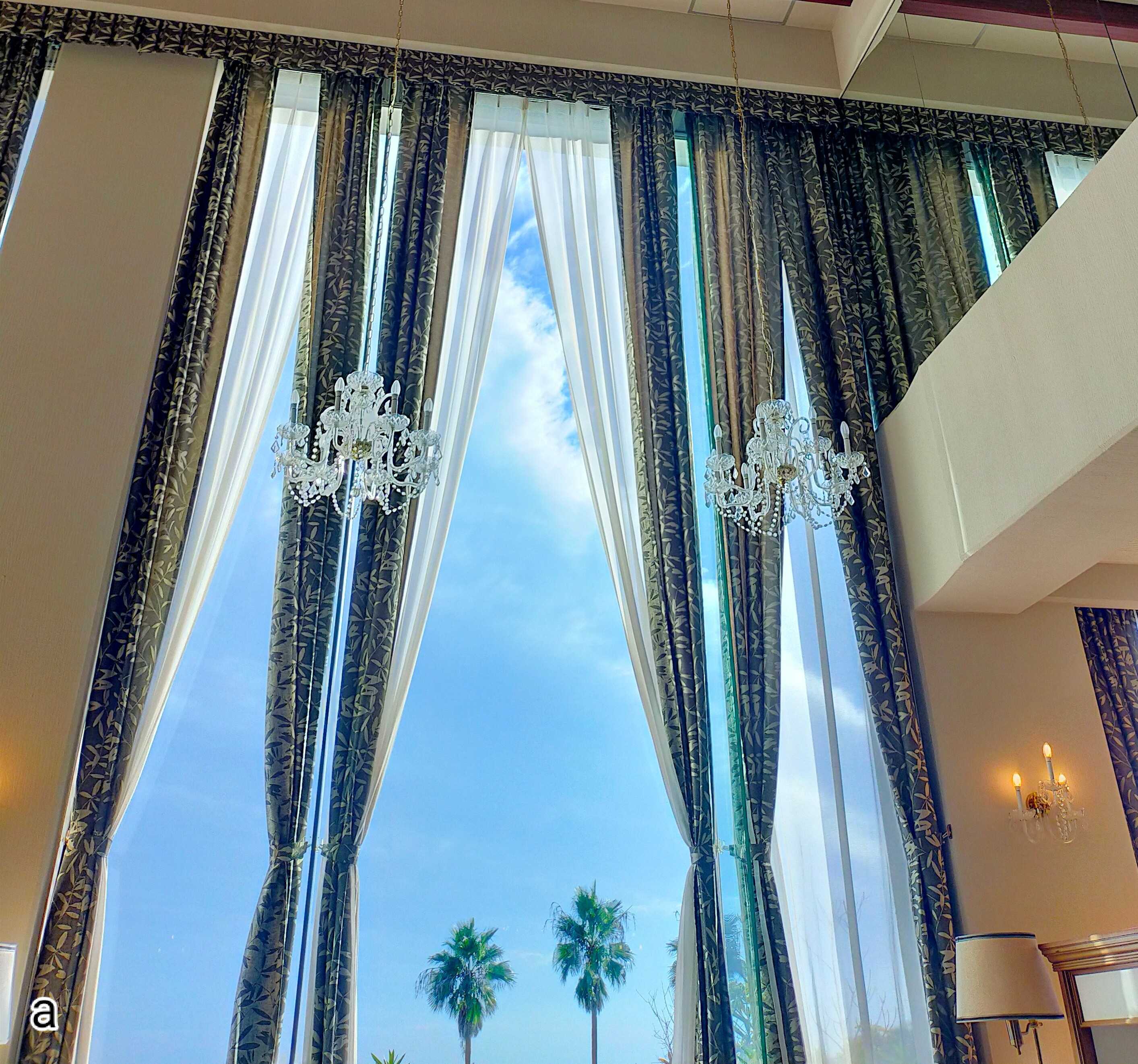 シャンデリアと大きな窓が豪華でとっても綺麗でした