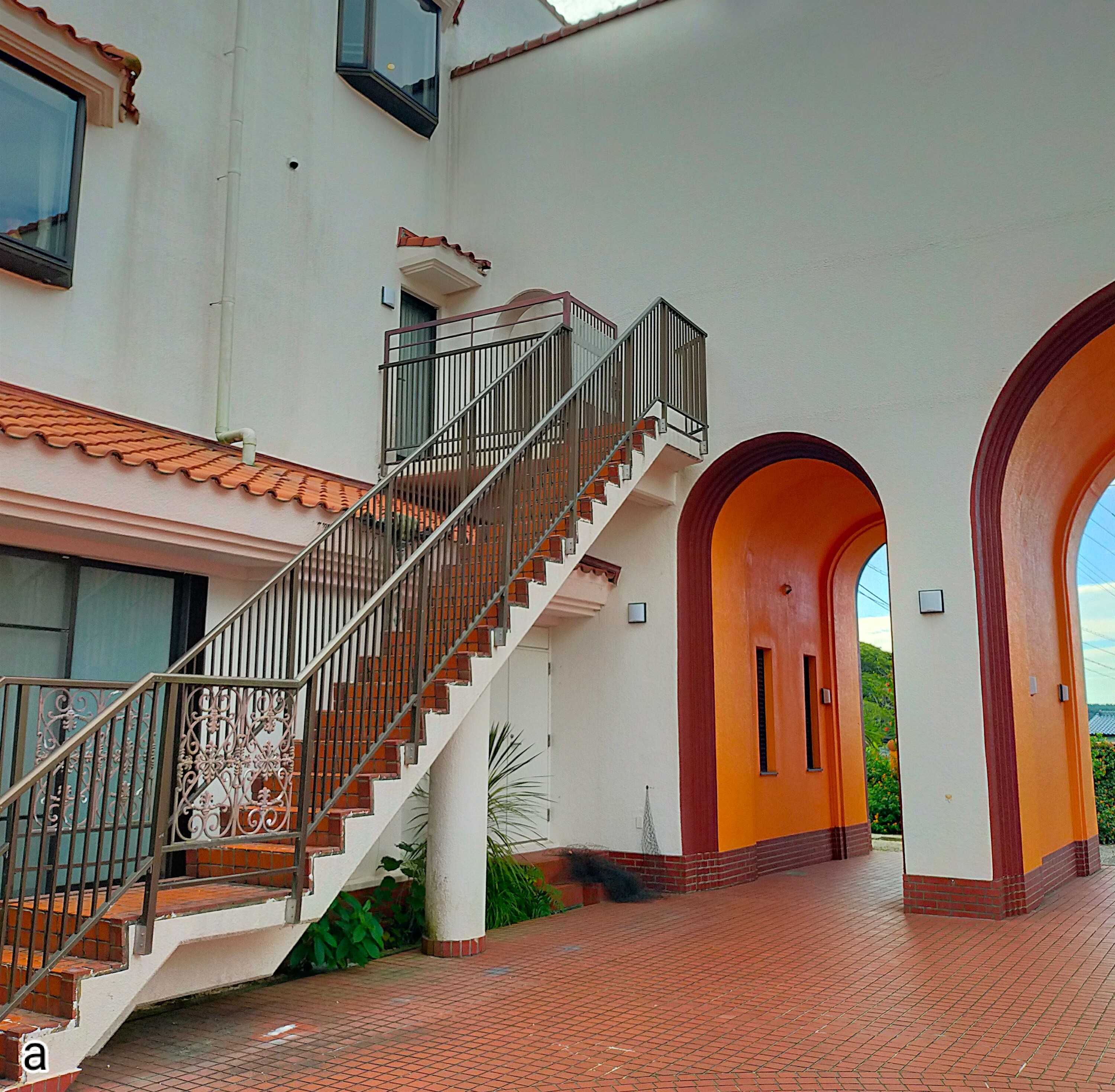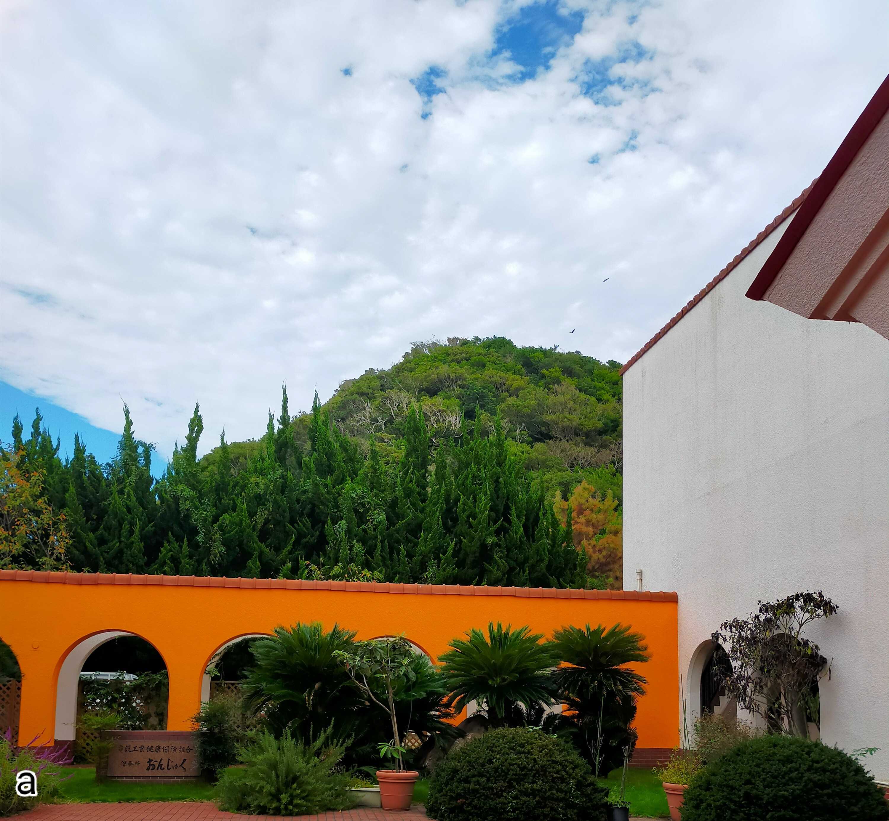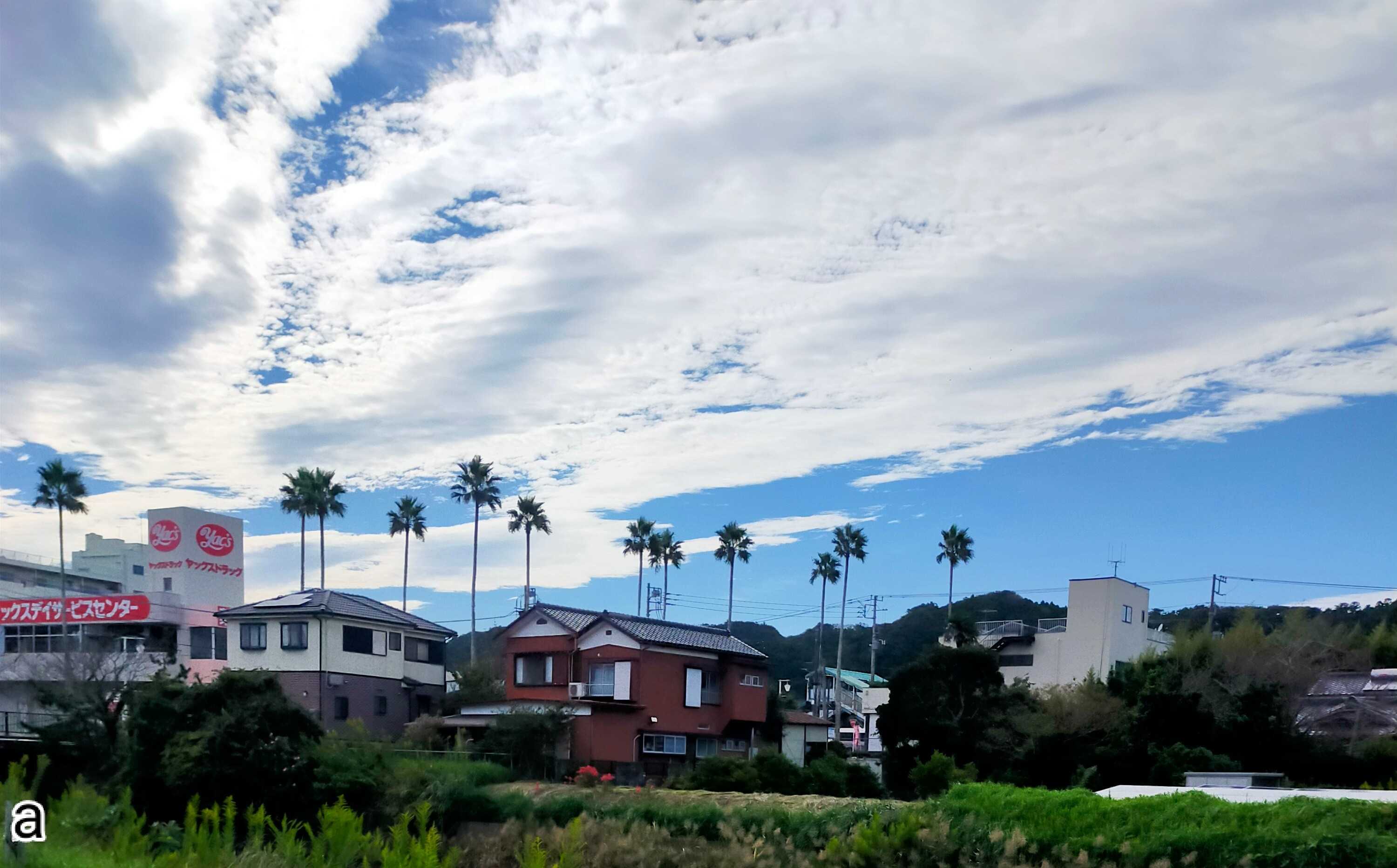 御宿公民館前の風景 たくさんの椰子の木がハワイみたいです